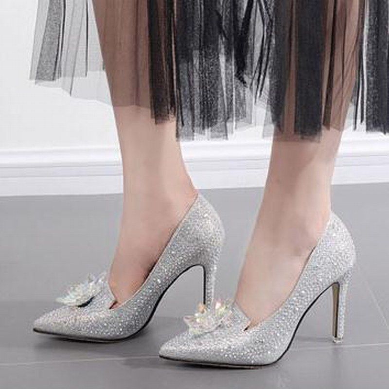Plus Size 40 41 High Heels Silver Wedding Shoes Bridal Bling Pumps Pointed Toe Boat Shoes Woman Dress Shoes Ladies Zapatos Mujer Women S Pumps Aliexpress